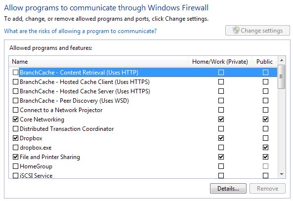 So in order for these third-party apps to connect to your computer, they must come through a port, which has to be open on your computer. You can check all the open ports by going to Start, Control Panel, and Windows Firewall. Then click on Allow a program of feature through Windows Firewall on the left hand side.