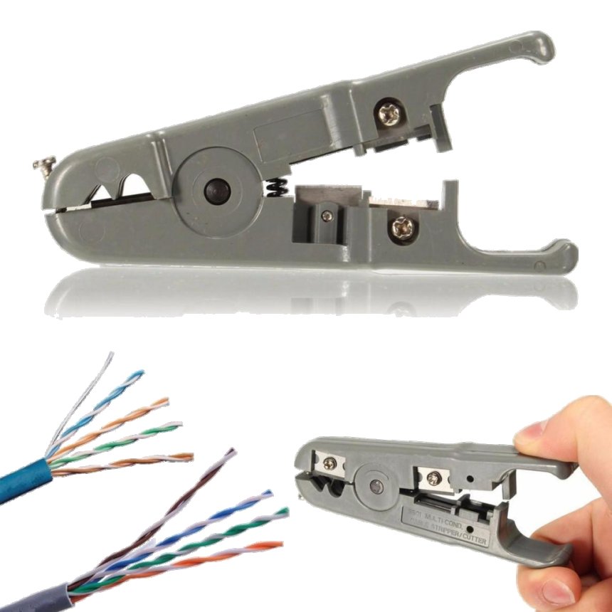 Make sure your strippers is adjusted properly on a scrap piece of cable. The Stripper should be adjusted to only score the jacket to make removing it easier and not nick the twisted pairs. Using a Coaxial Stripper strip around 1 inch of the jacket off. Be careful not to nick the conductors as this will cause the wire to break or short out the connection causing problems down the road. Inspect all wires for damage before proceeding to the next step.